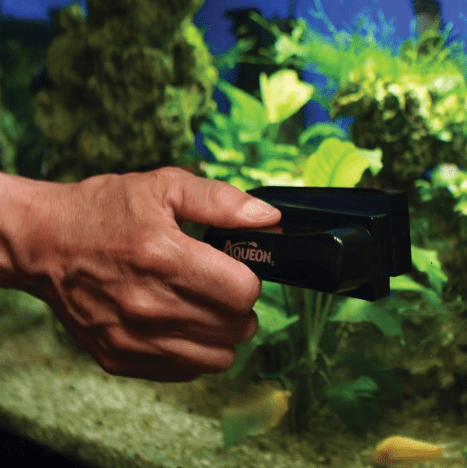 he Aqueon Aquarium Algae Cleaning Magnet makes it easy to keep your aquarium glass or acrylic surfaces clean—without ever getting your hands wet. This tool allows you to scrub algae from inside the tank by moving the magnet on the outside, making regular cleaning faster and more convenient.