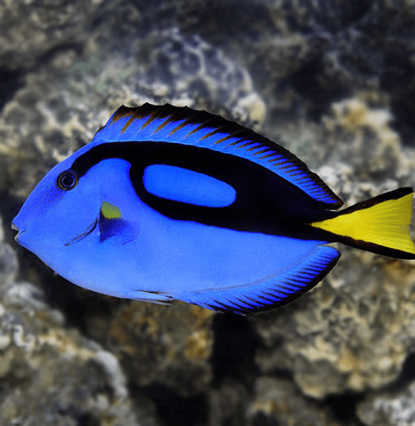 The Blue Hippo Tang is one of the most striking saltwater fish, known for its bright blue body, bold black markings, and vibrant yellow tail. Popularized as “Dory,” this fish is a favorite among aquarists but requires more advanced care due to its size and sensitivity.