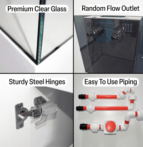 🔹 Superior Materials: The 0.5-inch tempered crystal glass ensures strength and long-term durability, resistant to scratches, fingerprints, and chemical wear. This makes it ideal for busy homes or offices where tanks are exposed to more handling and maintenance.