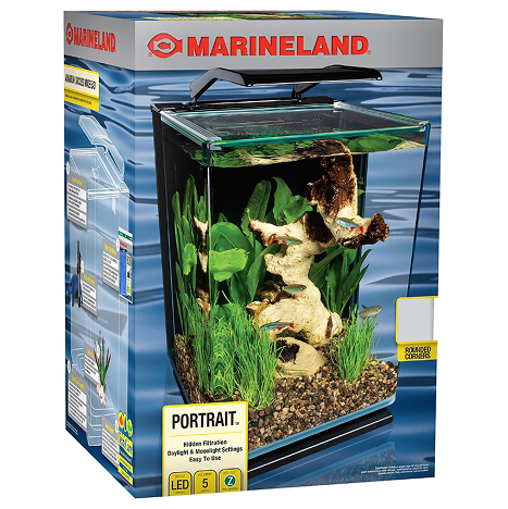 The Marineland Portrait 5G is a stylish small aquarium designed for hobbyists who want a modern glass tank without the clutter of bulky equipment. Its portrait orientation (taller rather than wide) gives it a unique look that stands out on a desk or countertop, and the curved glass edges make it feel premium compared to basic rectangular tanks.