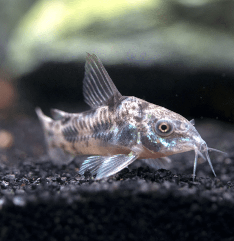They thrive in groups and are perfect for community tanks, where they’ll spend their days sifting through the substrate for leftover food. Best kept on soft sand to protect their sensitive barbels, Peppered Corys are hardy and adaptable, making them ideal for beginners.