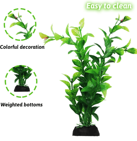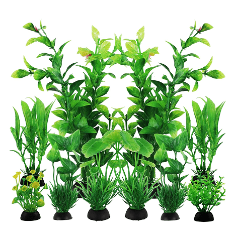 This set of 10 artificial aquarium plants includes a mix of small (2–5 inches) and large (up to 8 inches) pieces, allowing aquarists to create a dynamic and natural-looking aquascape. Made of soft, non-toxic plastic, the plants are safe for both freshwater and saltwater aquariums, and won’t alter the pH or water quality.